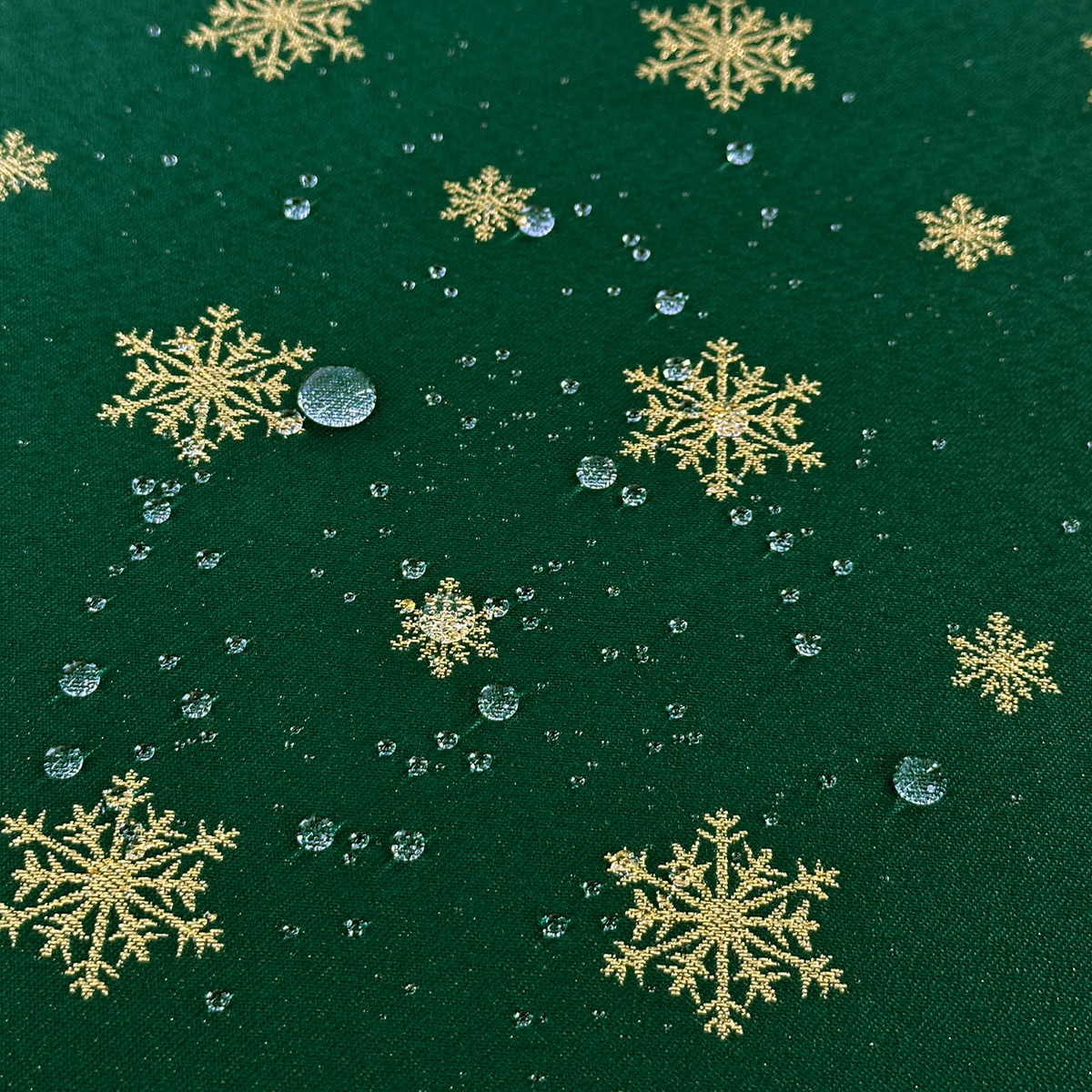 Obrus dwustronny posiada właściwości plamoodporne, dzięki temu rozlane płyny można zebrać z powierzchni tkaniny.