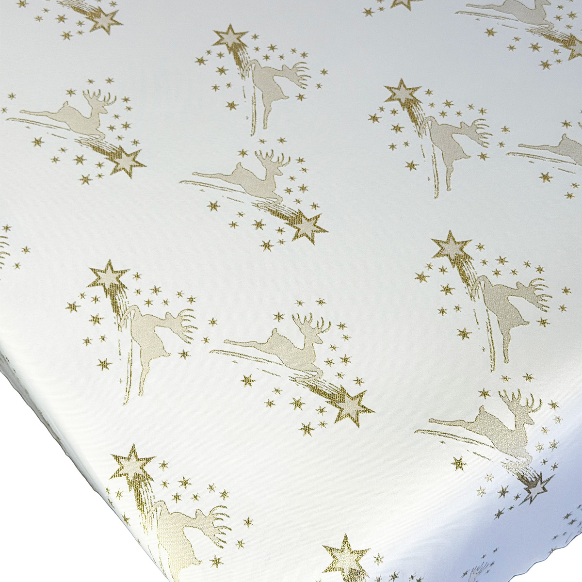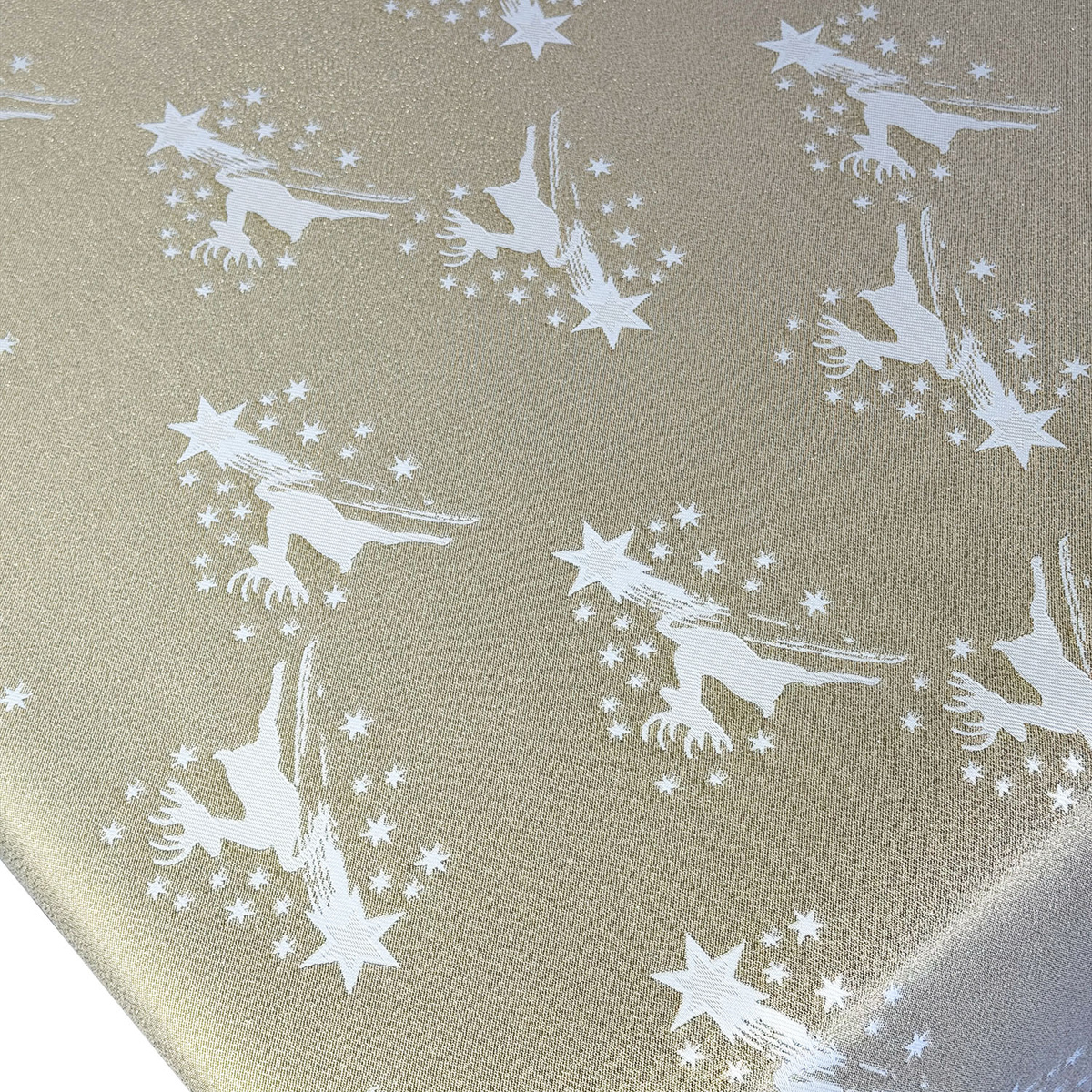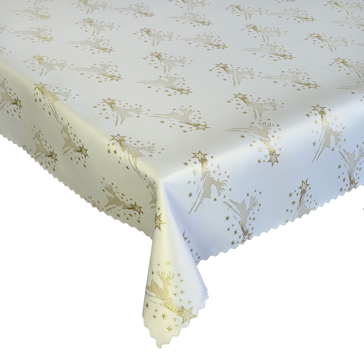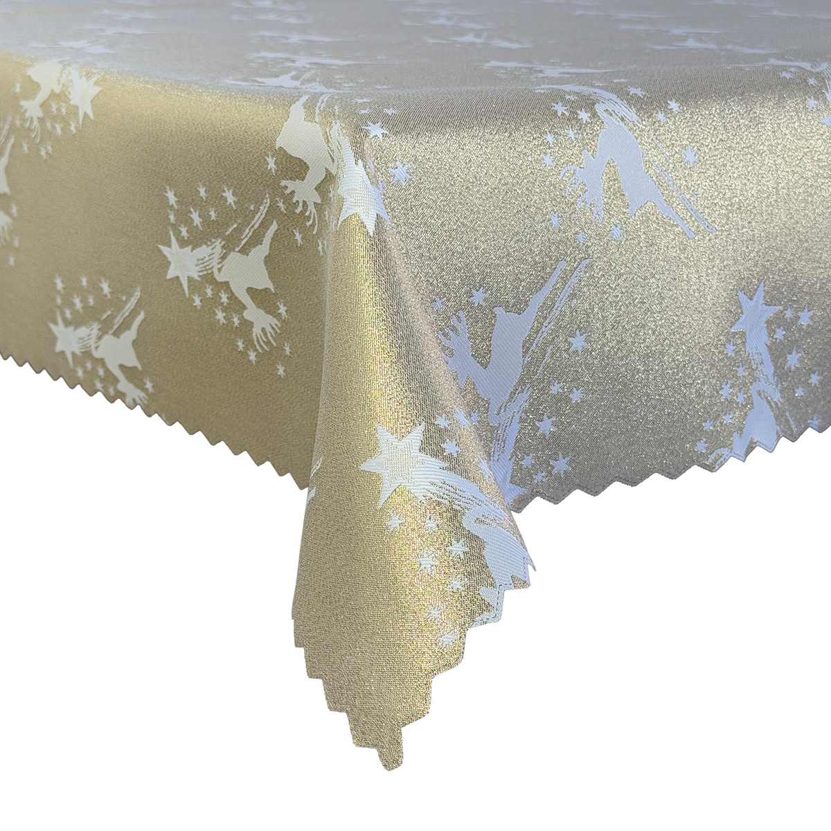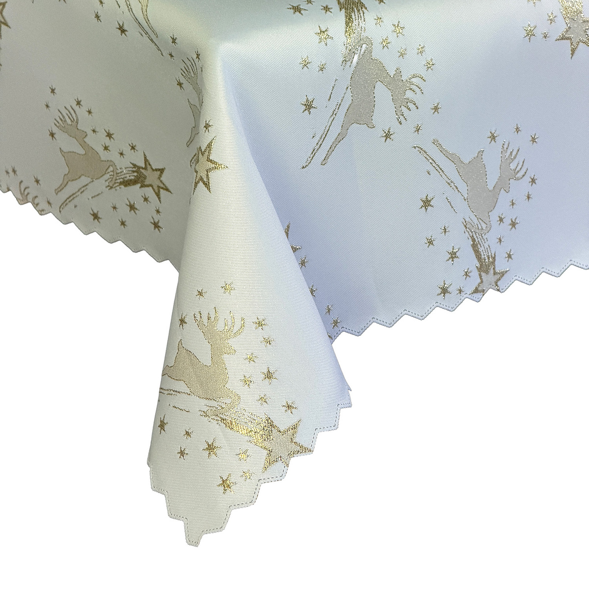 - Obrus plamoodporny, dwustronny. 100% poliester, polska tkanina i produkcja. Temperatura prania 30°C, prasowania 250°C. Gramatura 180 gsm. Oeko-Tex Standard 100.