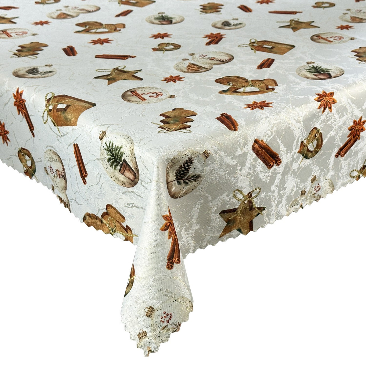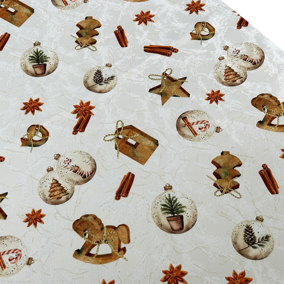 - Obrus plamoodporny, dwustronny. 100% poliester, polska tkanina i produkcja. Temperatura prania 30°C, prasowania 150°C. Gramatura ± 160 gsm. Oeko-Tex Standard 100.
