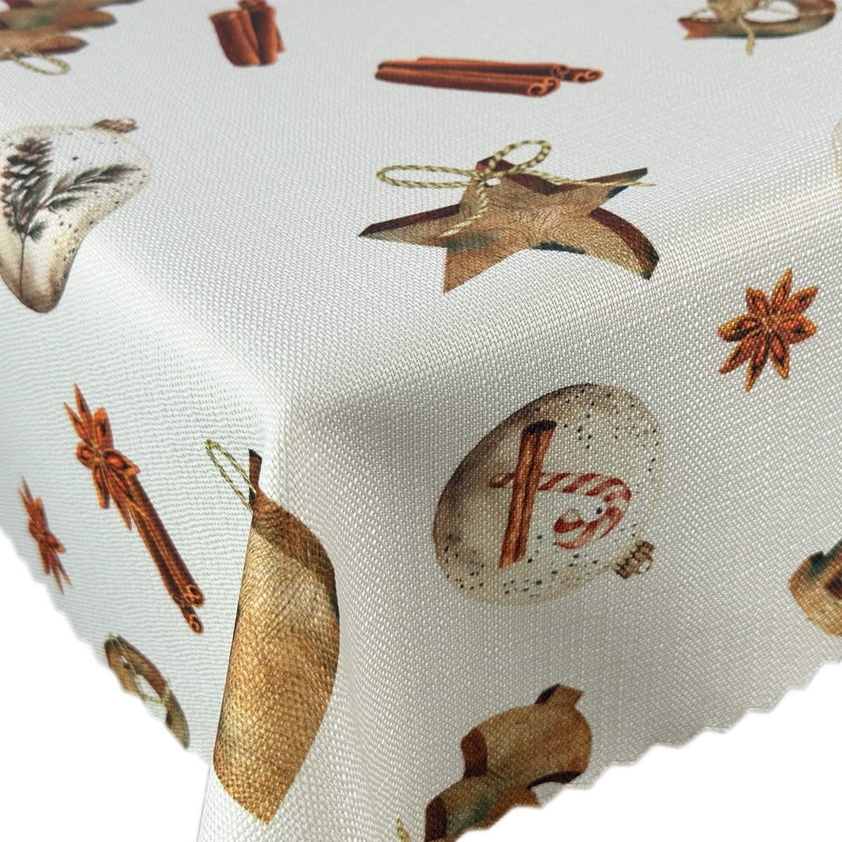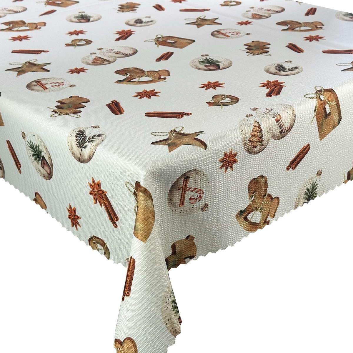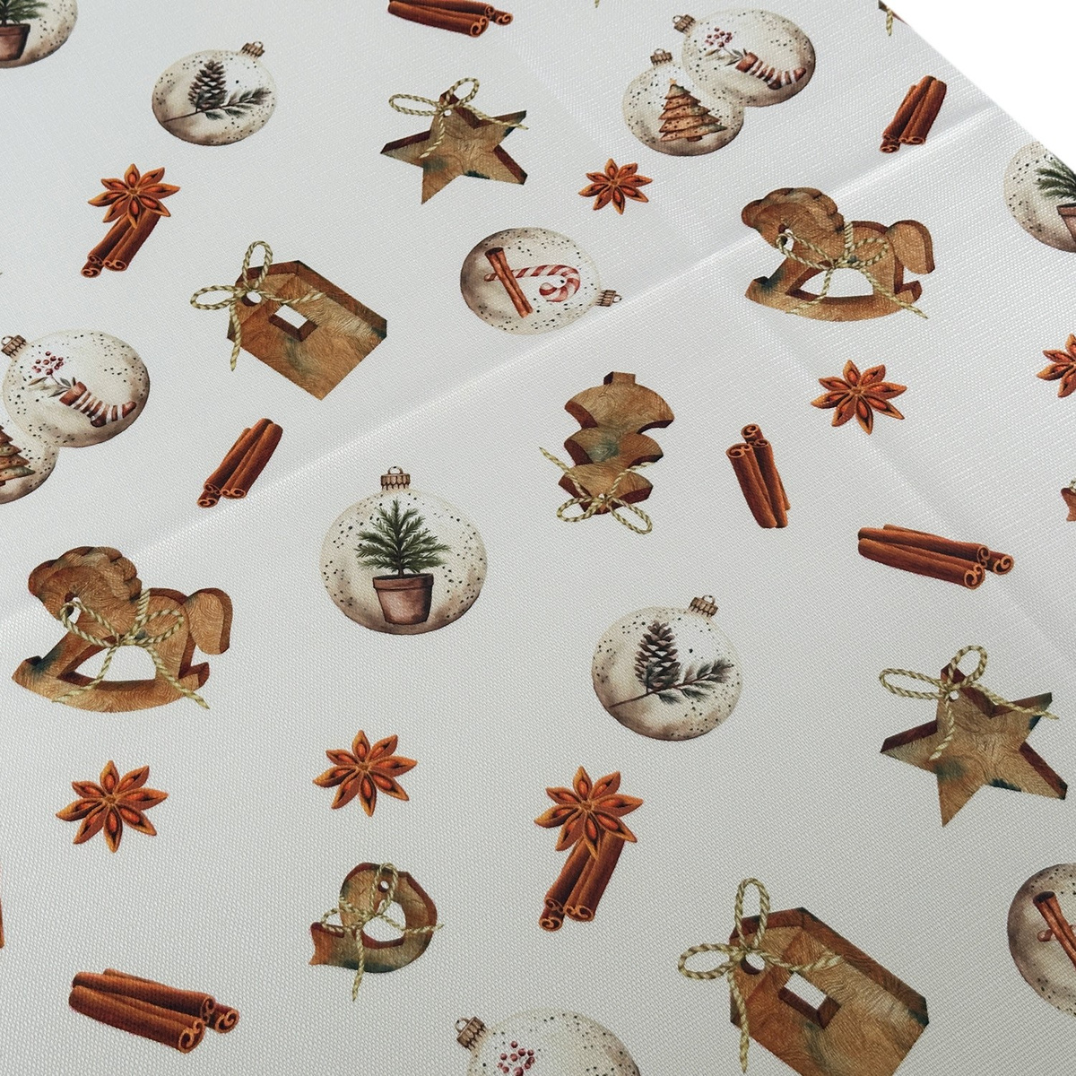 - Obrus plamoodporny, dwustronny. 100% poliester, polska tkanina i produkcja. Temperatura prania 30°C, prasowania 250°C. Gramatura 180 gsm. Oeko-Tex Standard 100.