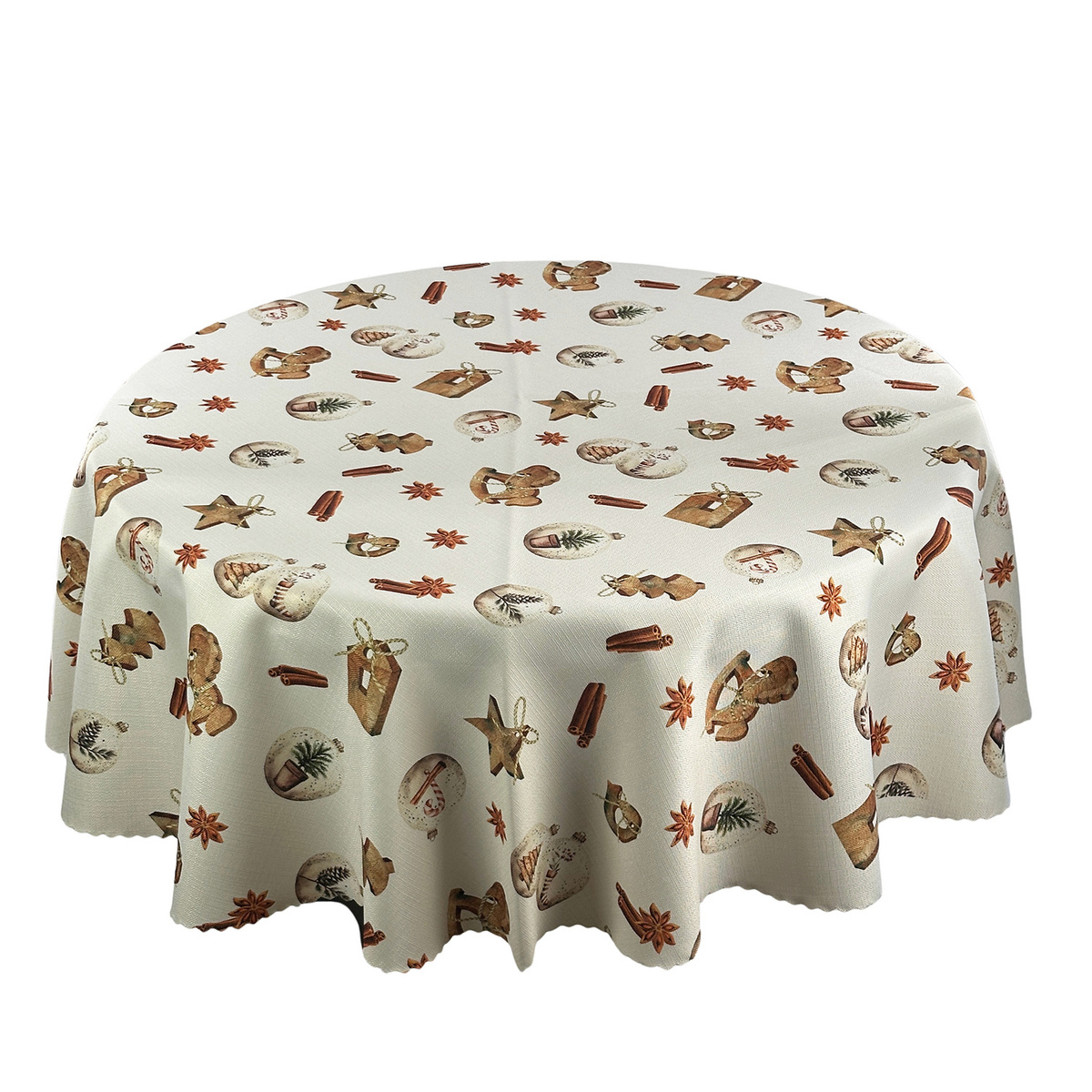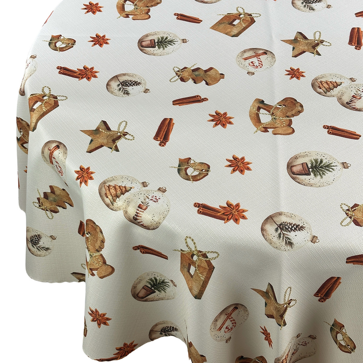 - Obrus plamoodporny, dwustronny. 100% poliester, polska tkanina i produkcja. Temperatura prania 30°C, prasowania 250°C. Gramatura 180 gsm. Oeko-Tex Standard 100.