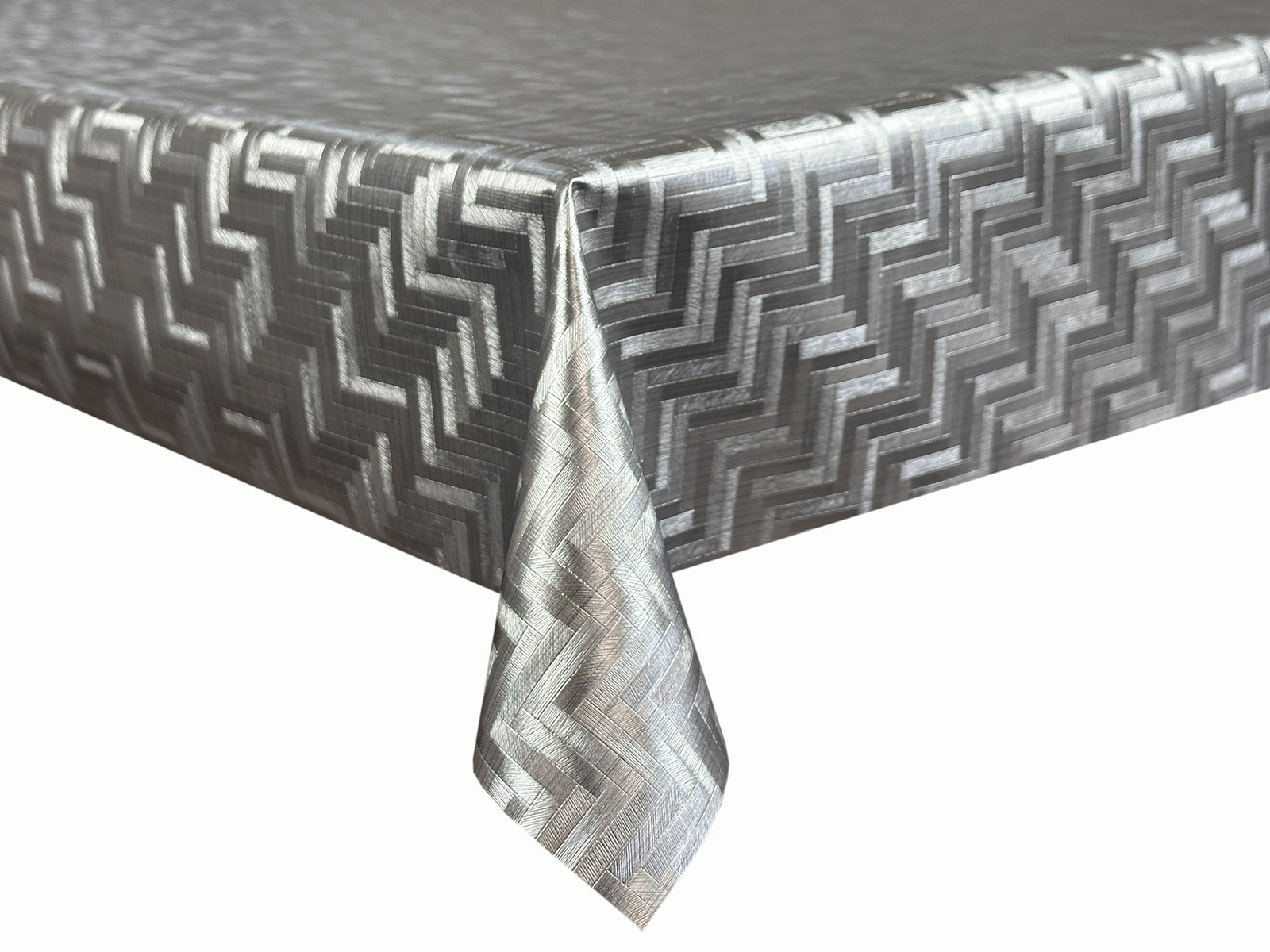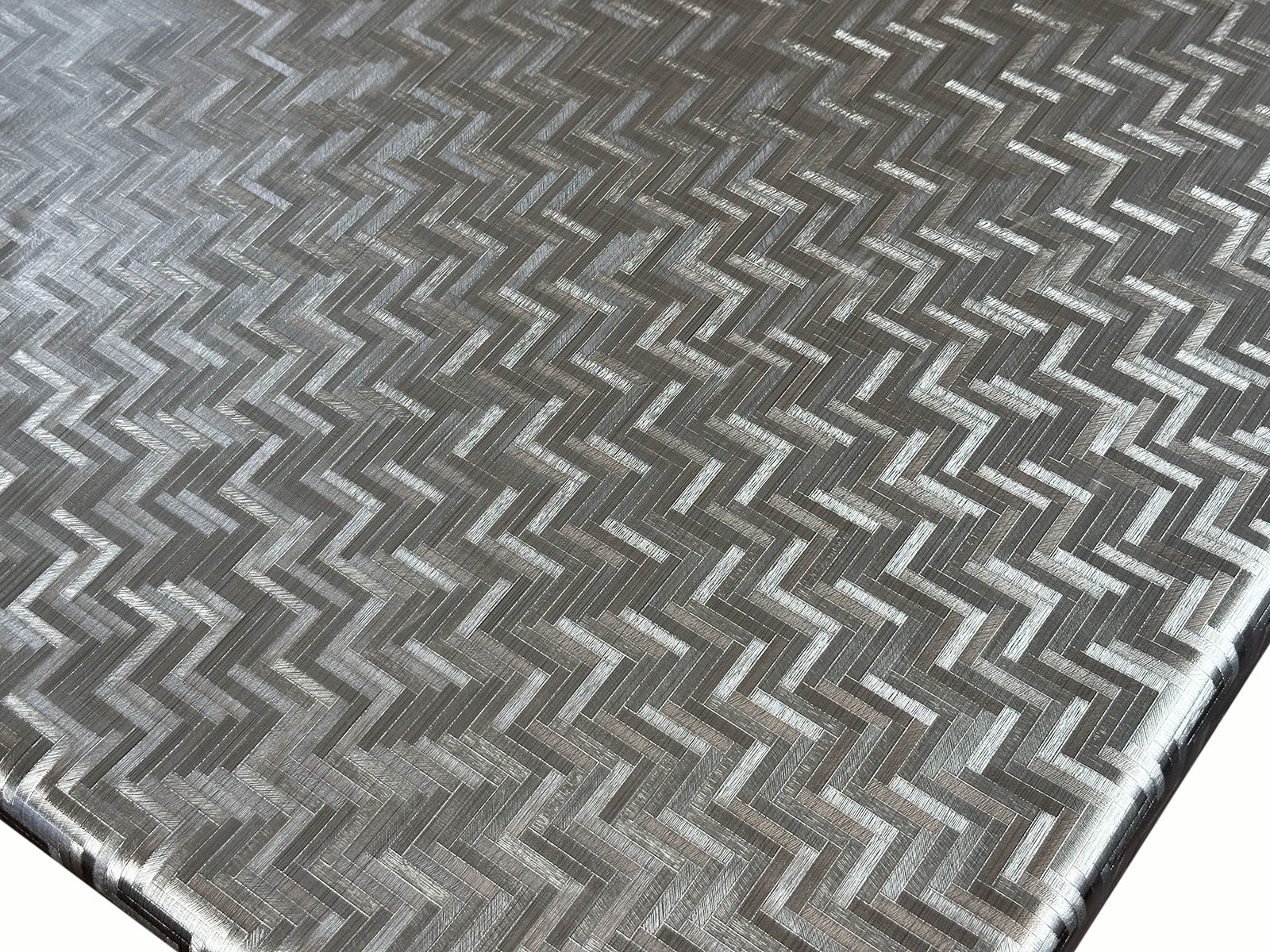 Cerata 140 Metallico na podkładzie z tkaniny poliestrowej. Eleganckie, jednobarwne, tłoczone wzory 3D, imitujące grawerowany i szczotkowany metal. Skład: drukowana folia 100% PCV na podłożu ze 100 % tkaniny poliestrowej.