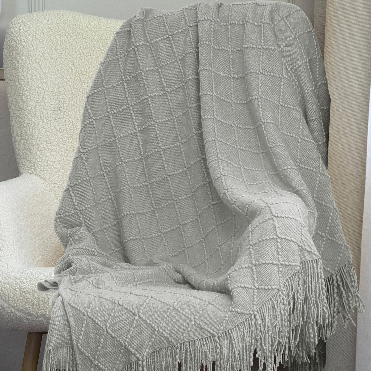 Koc Żakardowy Neria z Frędzlami Popiel Jasnoszary 150x200 cm
