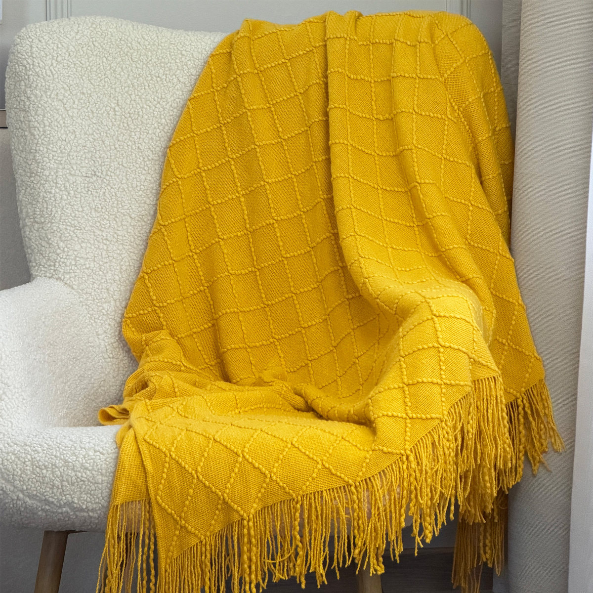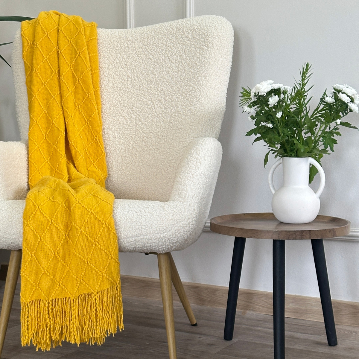 Koc Żakardowy Neria z Frędzlami Żółty 130x170 cm