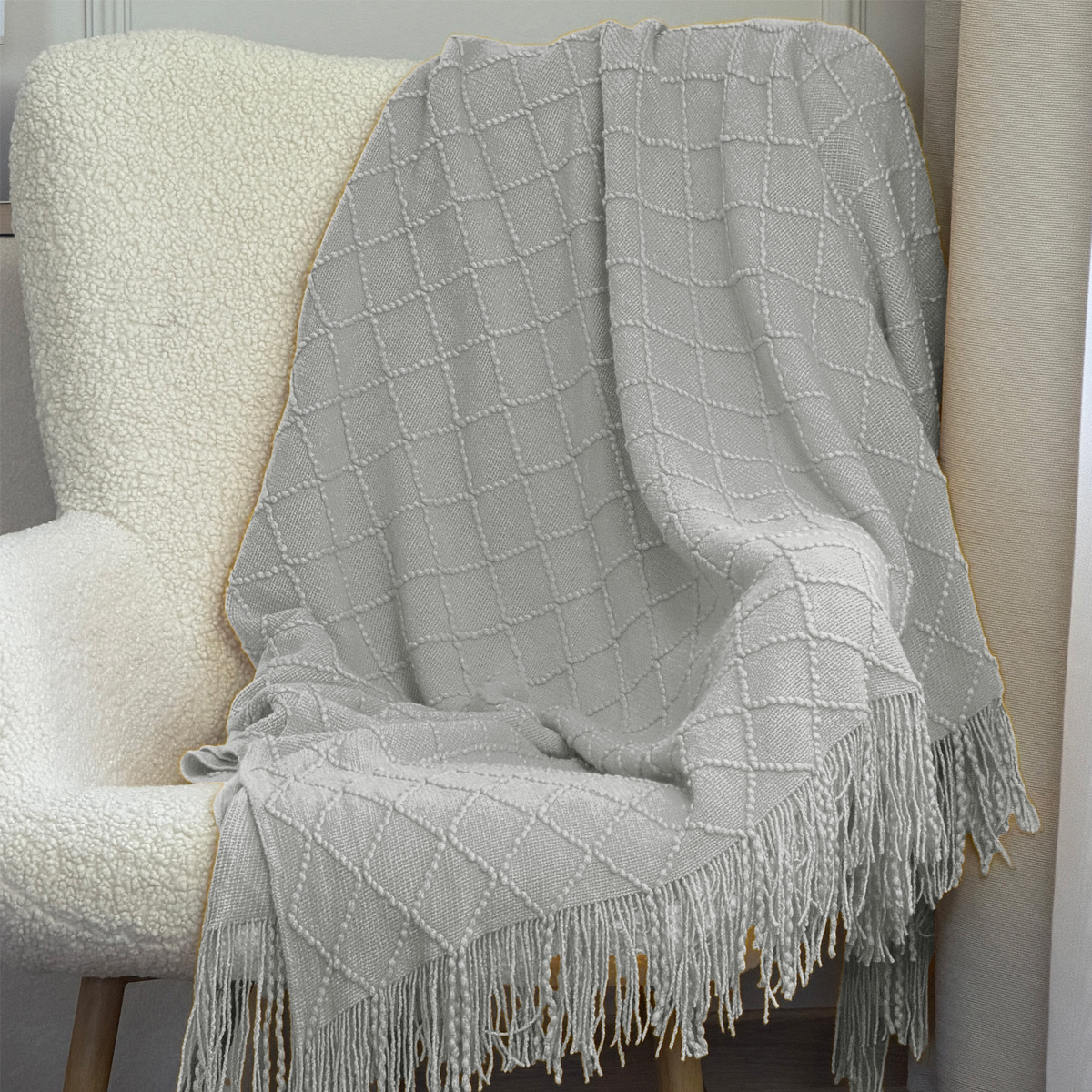 Koc Żakardowy Neria z Frędzlami Popiel Jasnoszary 130x170 cm