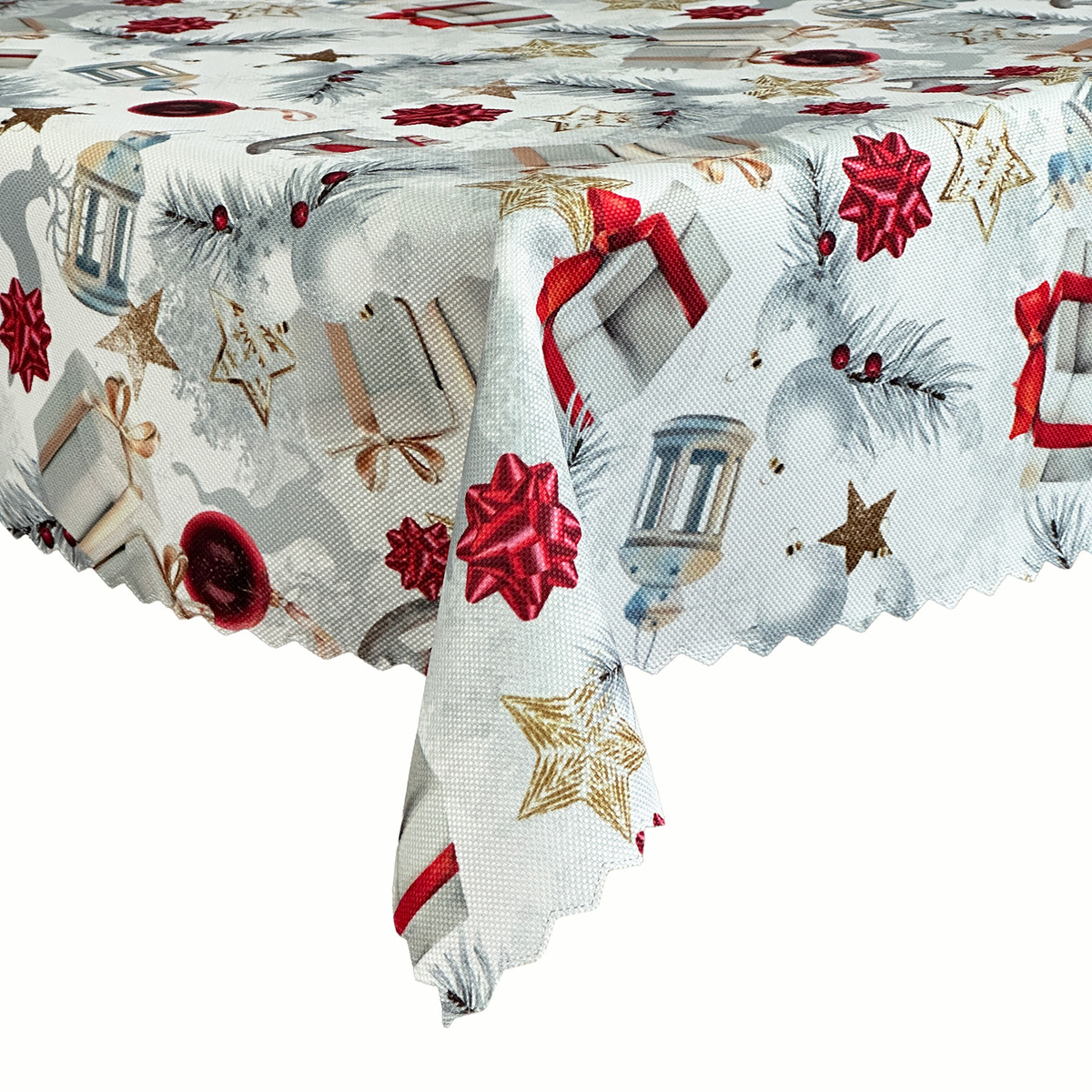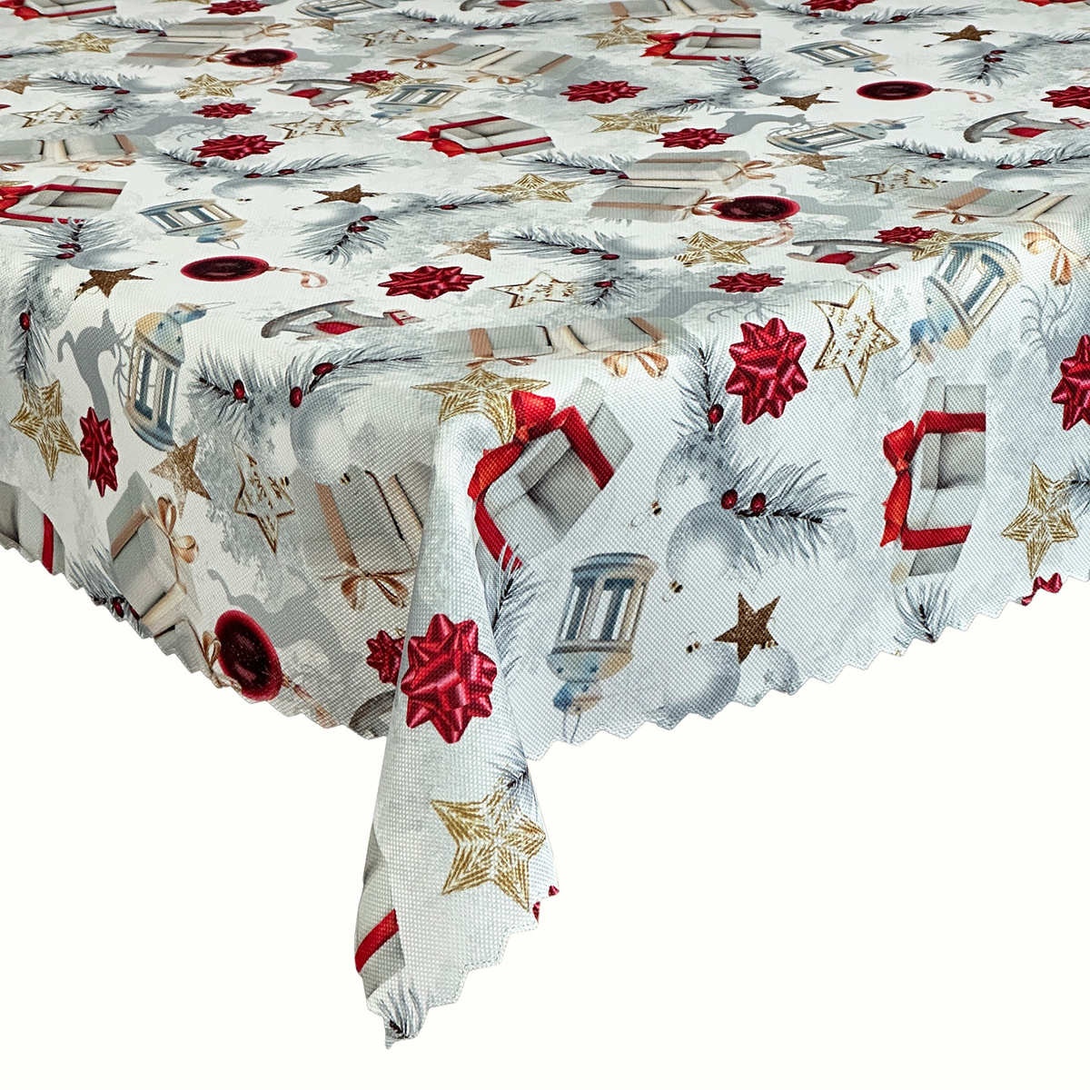 Wprowadź świąteczny klimat do swojego domu dzięki temu wysokiej jakości i praktycznemu obrusowi bożonarodzeniowemu w klasycznym wzorze.