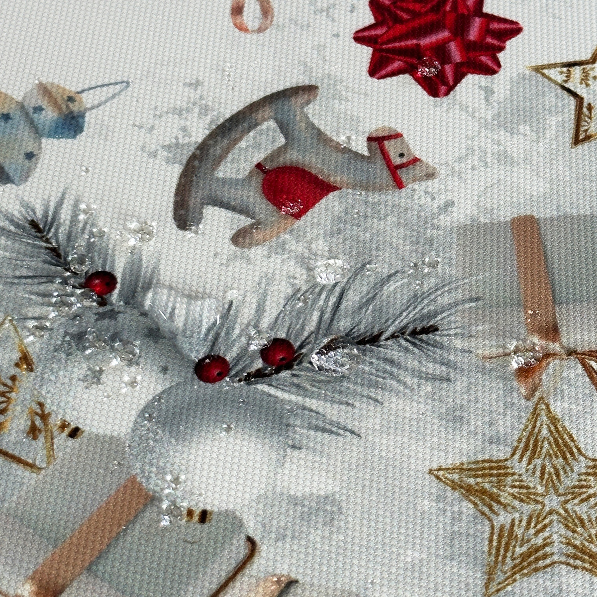 Ten świąteczny obrus z motywem świątecznym to idealna dekoracja na czas Bożego Narodzenia. Dzięki specjalnej powłoce materiał jest plamoodporny i łatwy w pielęgnacji, doskonały do codziennego użytku w okresie świątecznym.