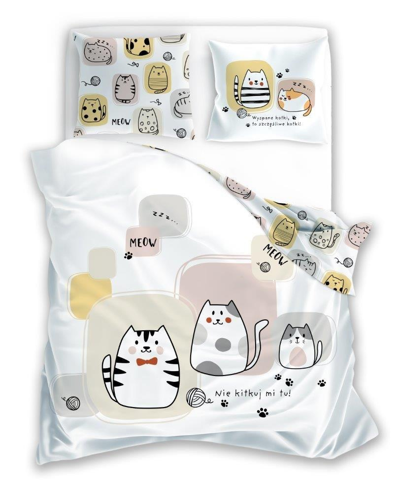 Komplet Pościeli Bawełnianej Kotki 140x200 cm + 70x90 cm
