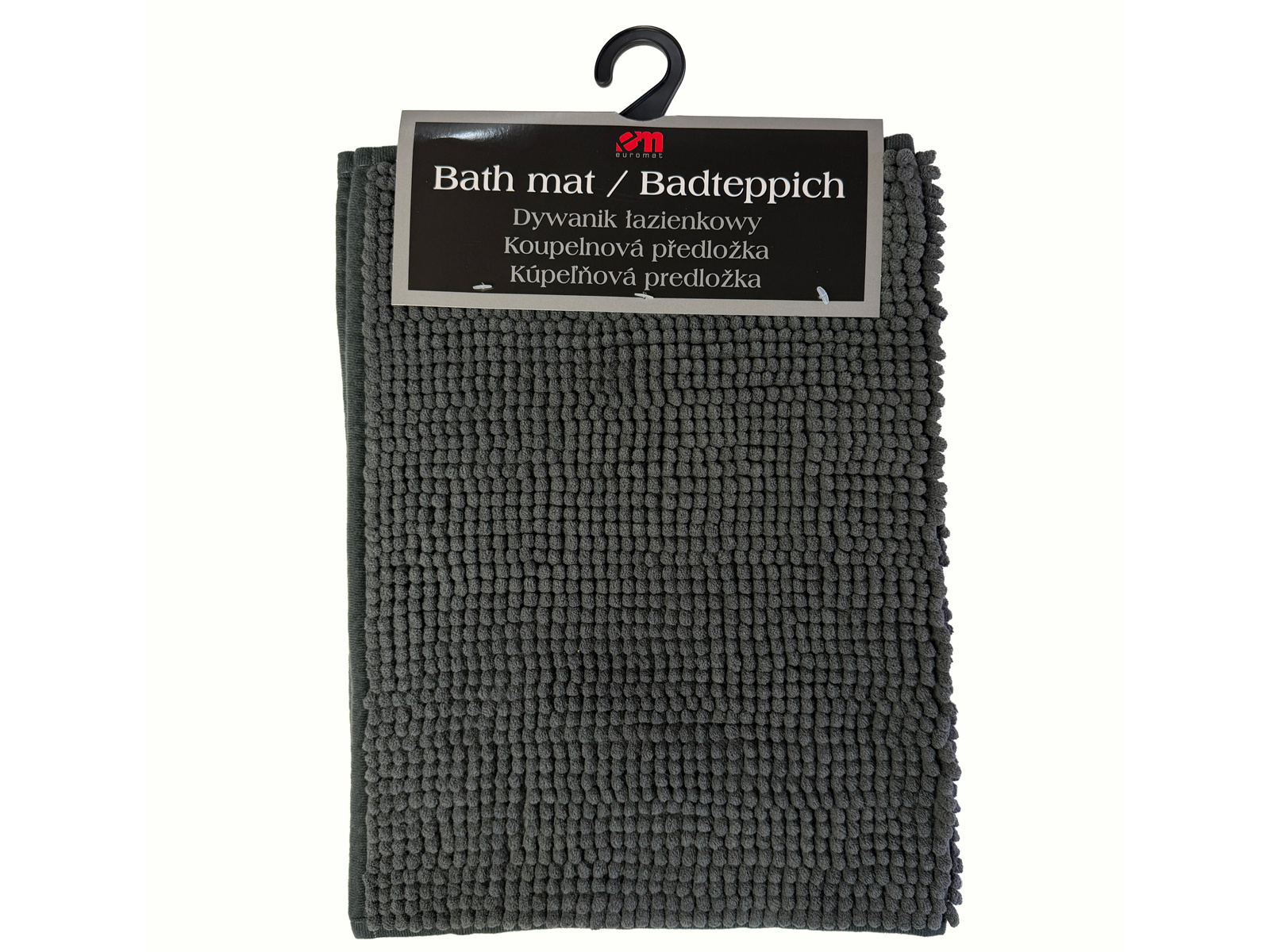 - Dywaniki łazienkowe MADURA – jednobarwne. Wykonane z miękkiego mikrowłókna poliestrowego typu Chenille, o wysokości 10 mm i grubości 8 mm. Gramatura 1000 g/m2. Na antypoślizgowym podłożu. Wyprodukowane w Chinach.