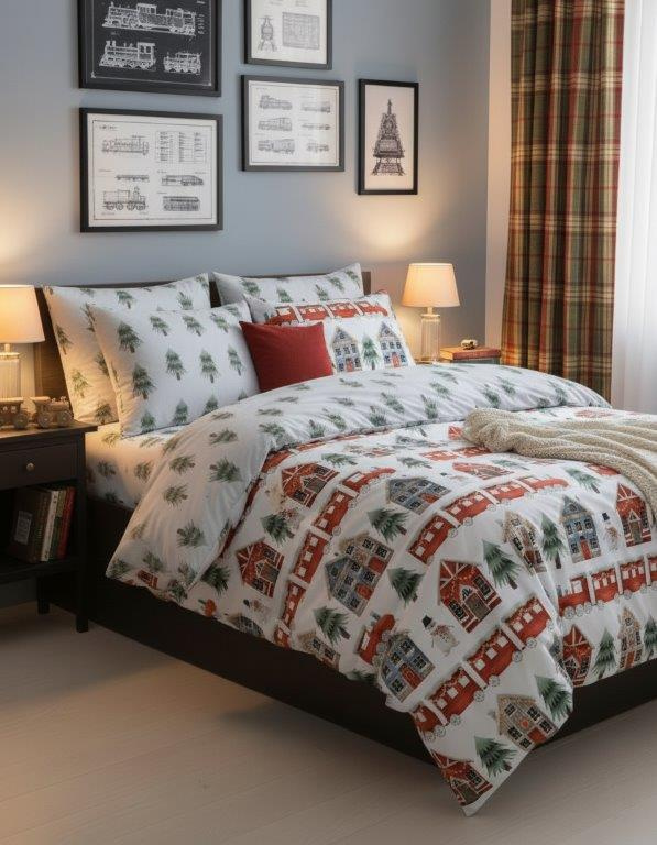 Komplet Pościeli 140x200+70x90 Scandic 075 Zima Święta Pociąg