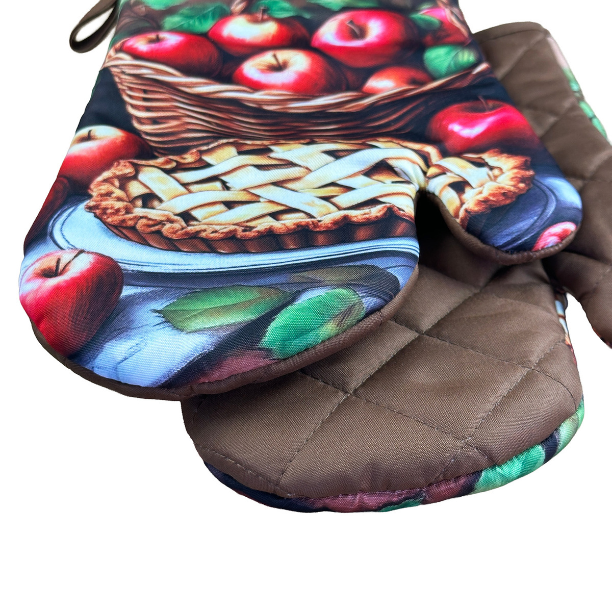 Rękawiczki kuchenne charakteryzują się nadrukowanym motywem, wszytymi magnesami oraz uchwytami, dzięki którym można je zawiesić. Rękawice do kuchni są uniwersalnym akcesorium kuchennym, posiadają klasyczny kształt oraz wydzielone miejsce na kciuk.