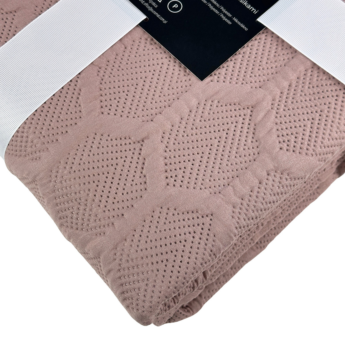 Nakrycie na łóżko wykonane jest z drukowanej tkaniny poliestrowej z delikatnym, tłoczonym wzorem.