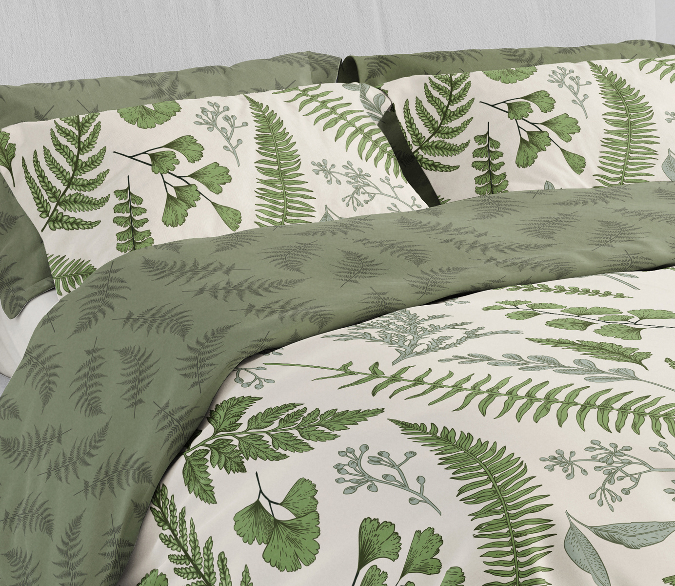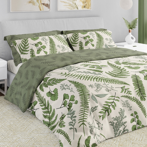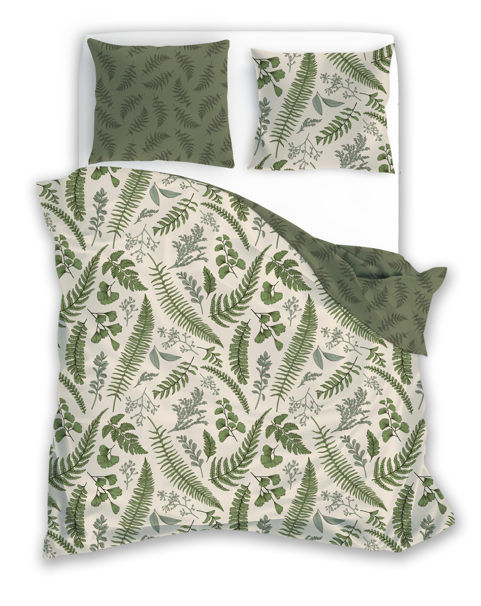 Komplet Pościeli Satyna Bawełniana 160x200+ 2x70x80 Boho 008 Liście Paproci