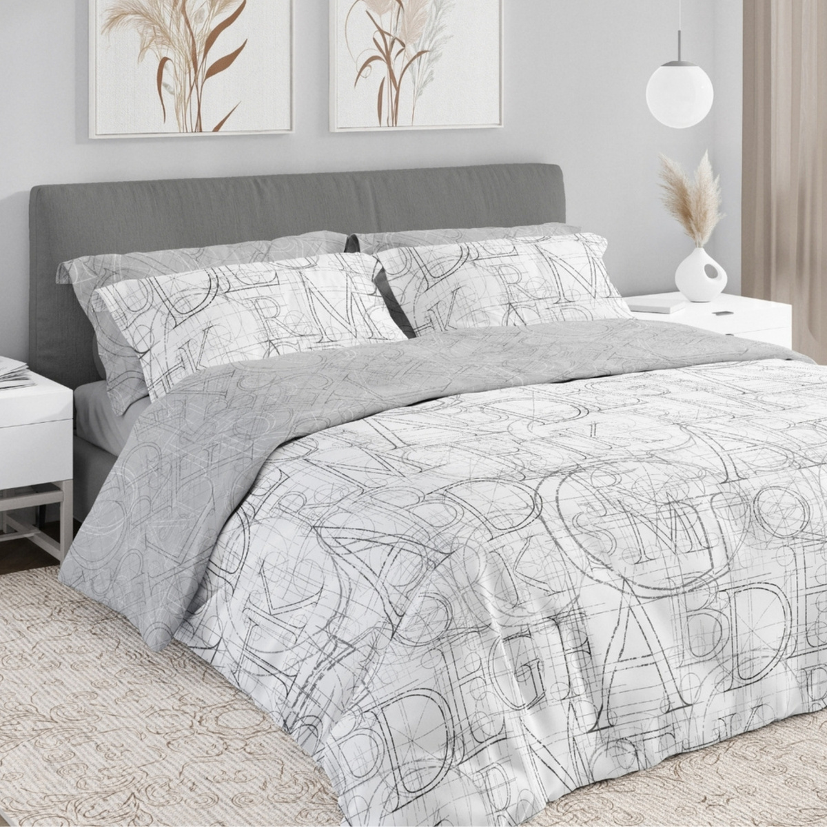 Komplet Pościeli Satyna Bawełniana 220x200+ 2x70x80 Boho 009 Litery