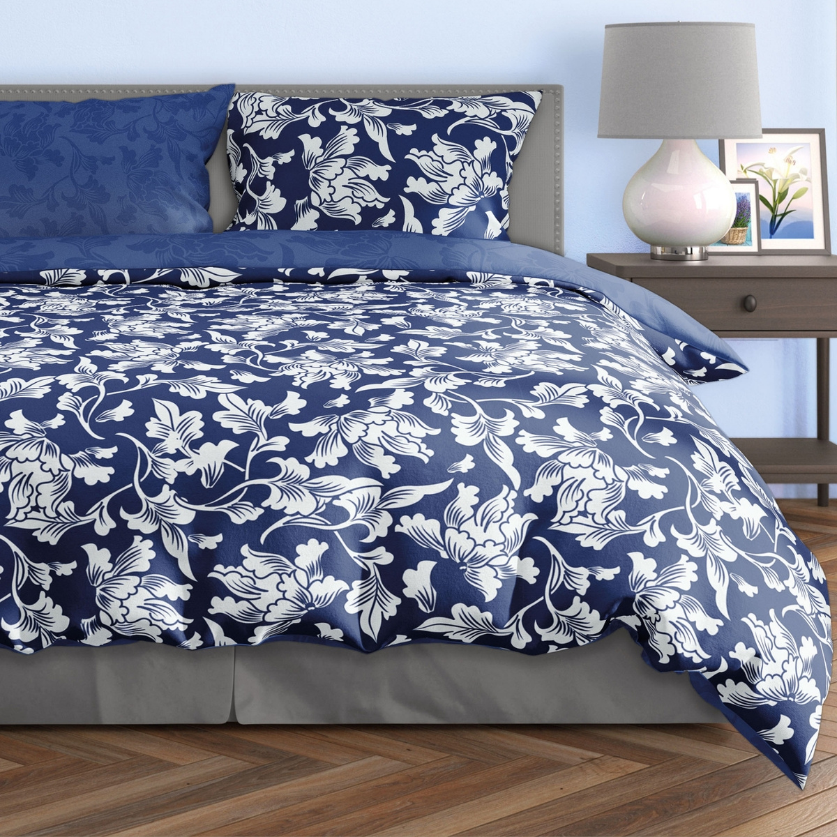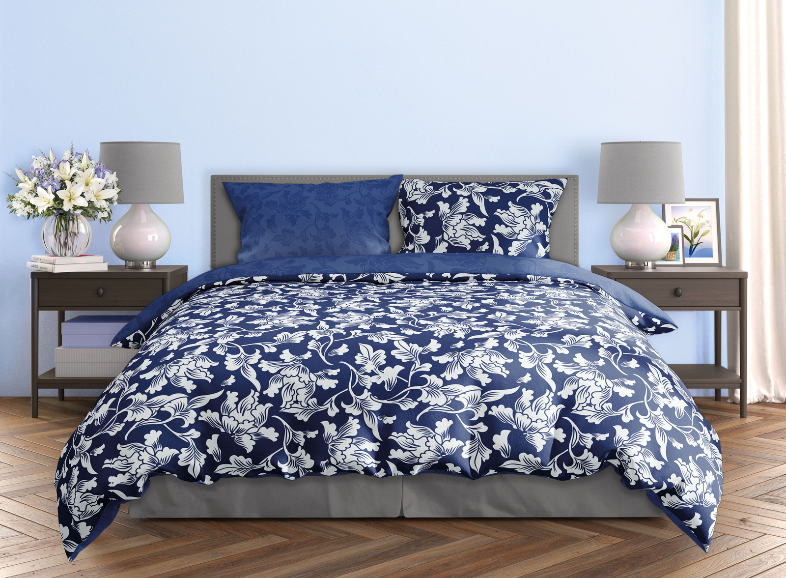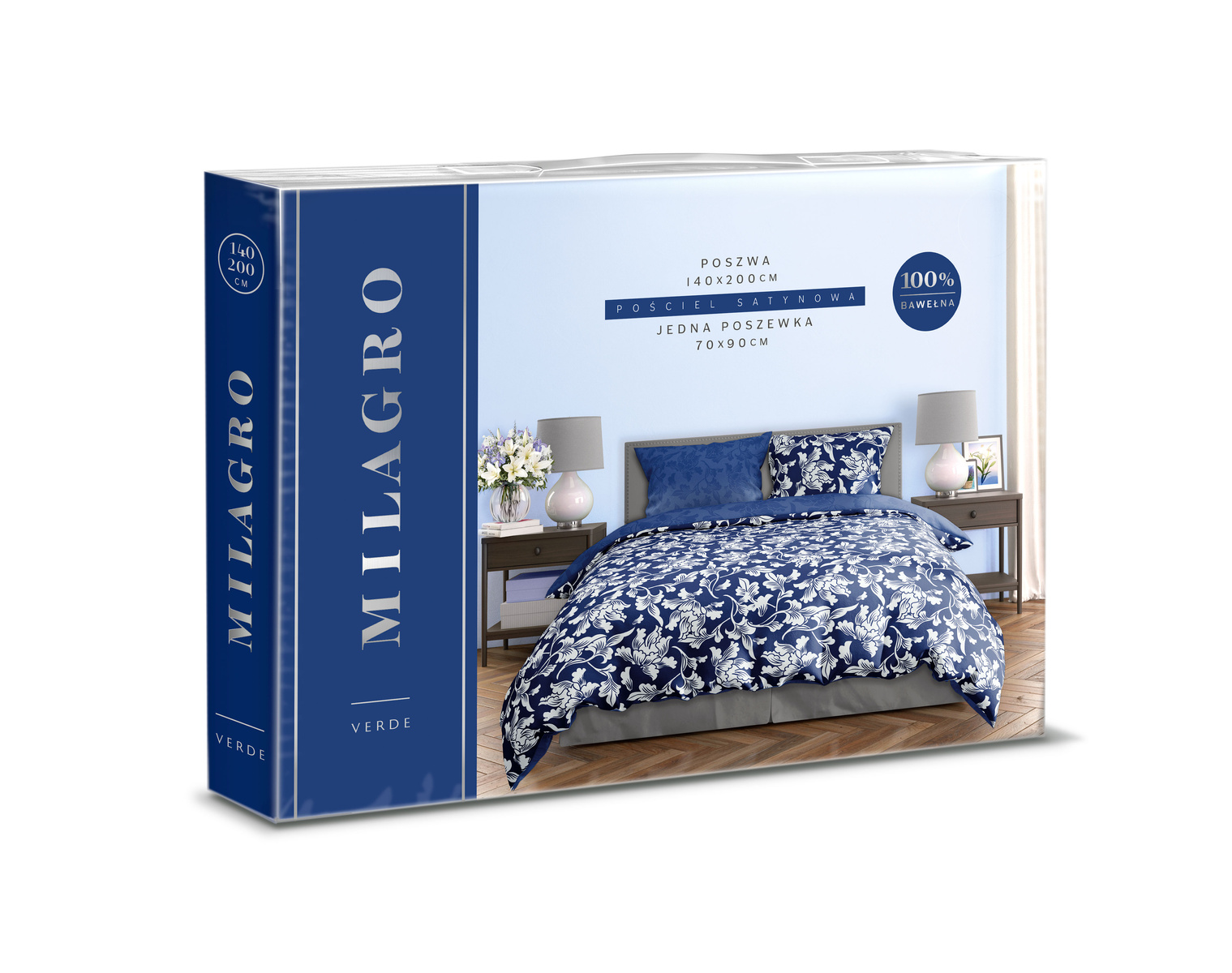 Wyprodukowany z satyny bawełnianej. W skład kompletu wchodzi poszwa na kołdrę oraz jedna poszewka na poduszkę.