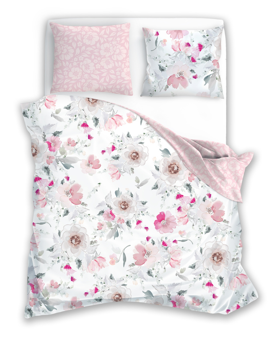Wyprodukowany z satyny bawełnianej. W skład kompletu wchodzi poszwa na kołdrę oraz dwie poszewki na poduszkę.