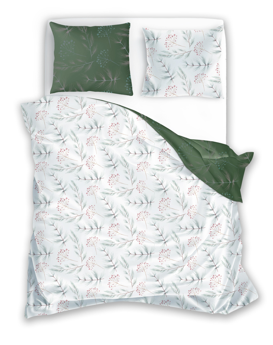 Wyprodukowany z satyny bawełnianej. W skład kompletu wchodzi poszwa na kołdrę oraz dwie poszewki na poduszkę.