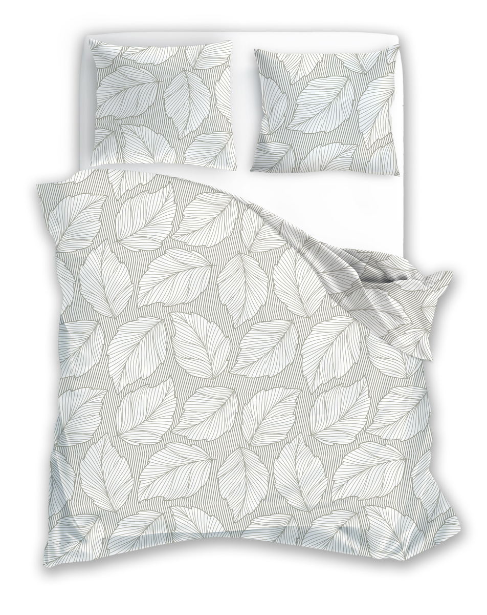 Komplet pościeli wyprodukowany w 100% bawełny, zachwyca delikatnością, dba o odpowiednią cyrkulację powietrza i zapewnia komfortowy, regenerujący sen niezależnie od pory roku.