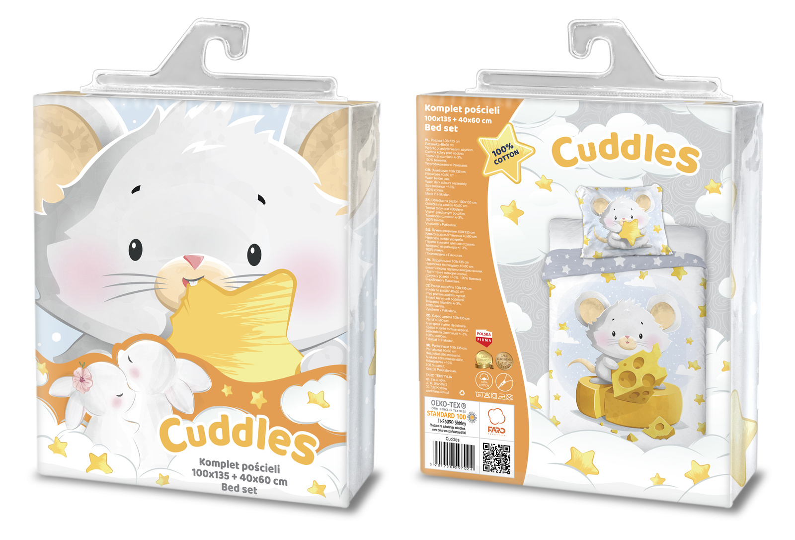 - Rozmiar: poszwa na kołdrę 100x135, poszewka na poduszkę 40x60