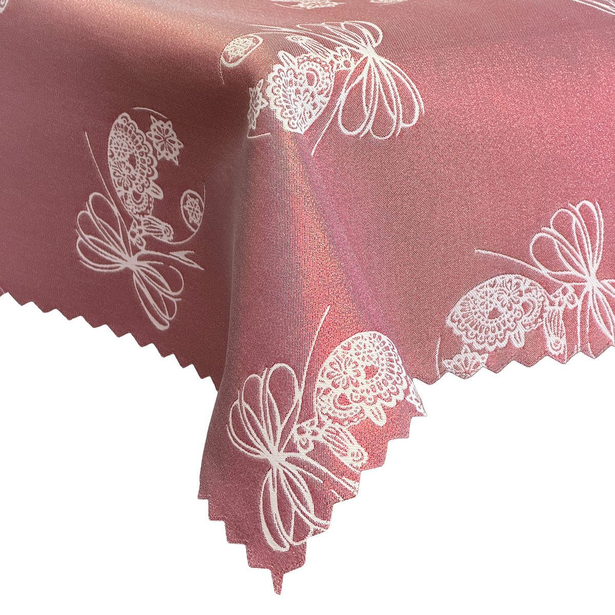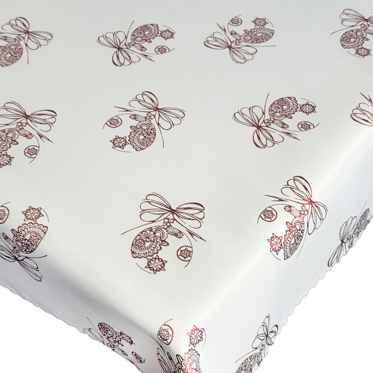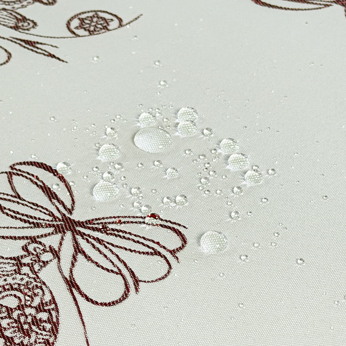 Obrus dwustronny posiada właściwości plamoodporne, dzięki temu rozlane płyny można zebrać z powierzchni tkaniny.