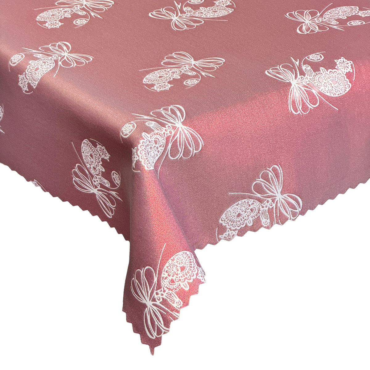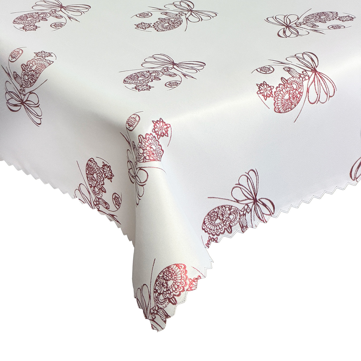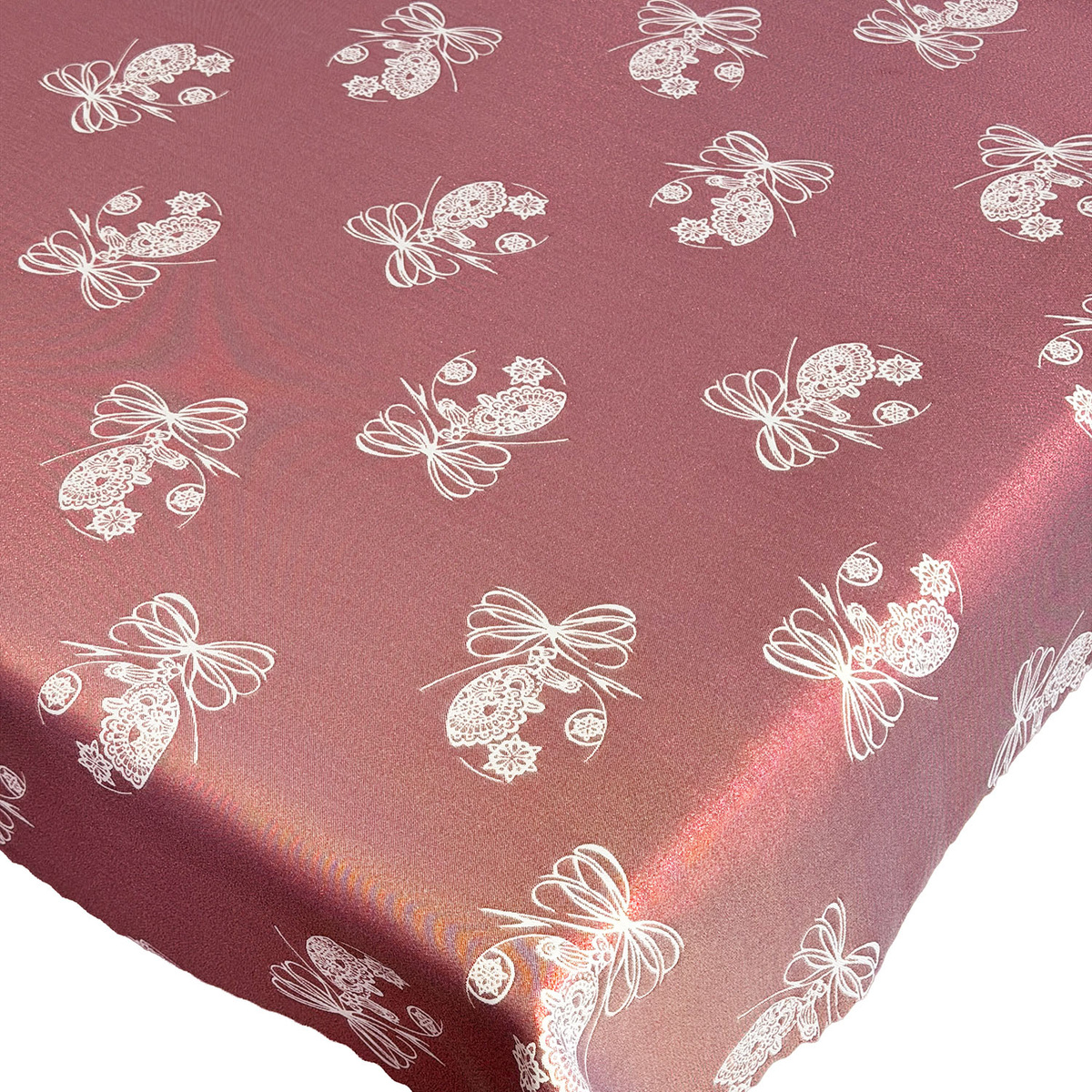 Obrus dwustronny posiada właściwości plamoodporne, dzięki temu rozlane płyny można zebrać z powierzchni tkaniny.