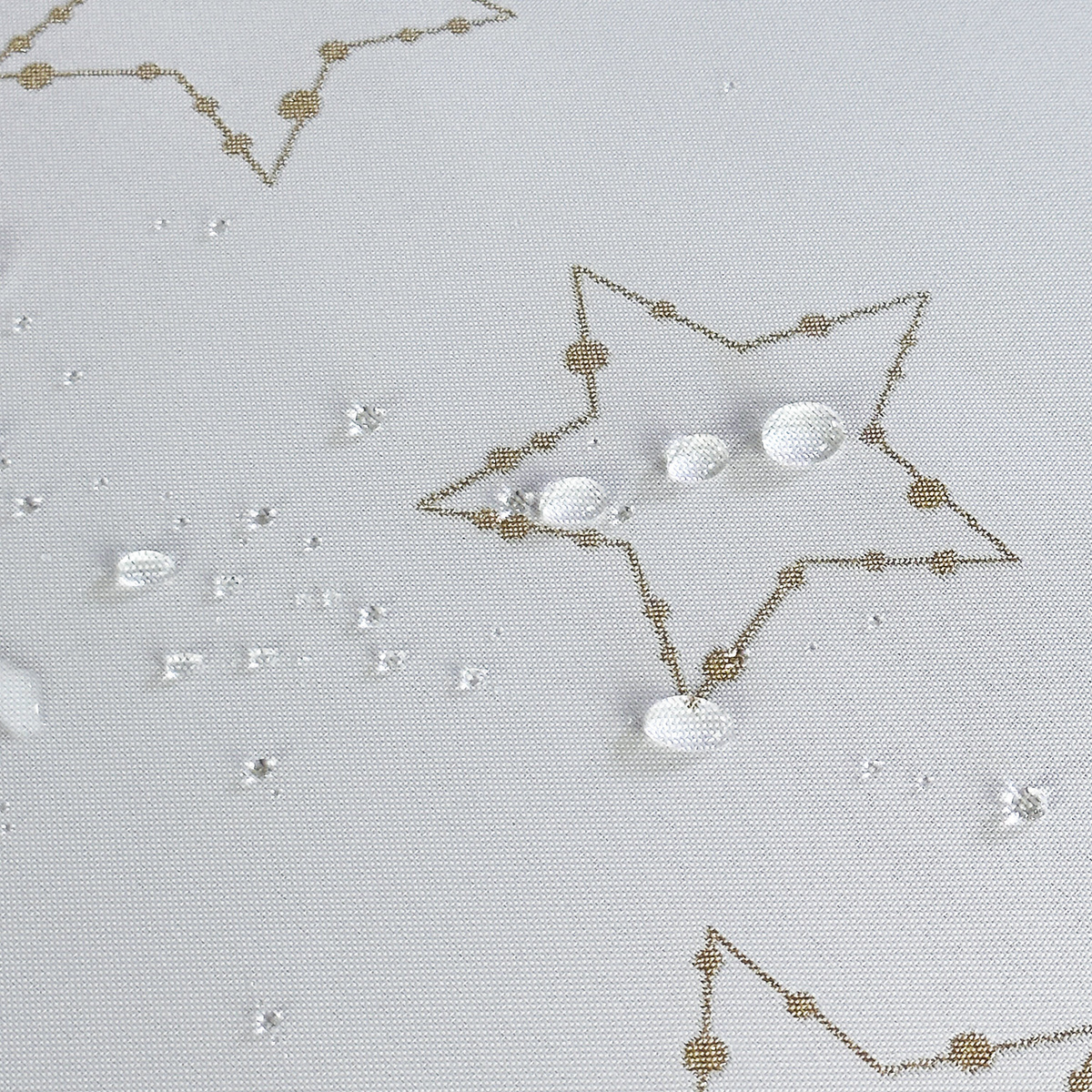 Obrus dwustronny posiada właściwości plamoodporne, dzięki temu rozlane płyny można zebrać z powierzchni tkaniny.