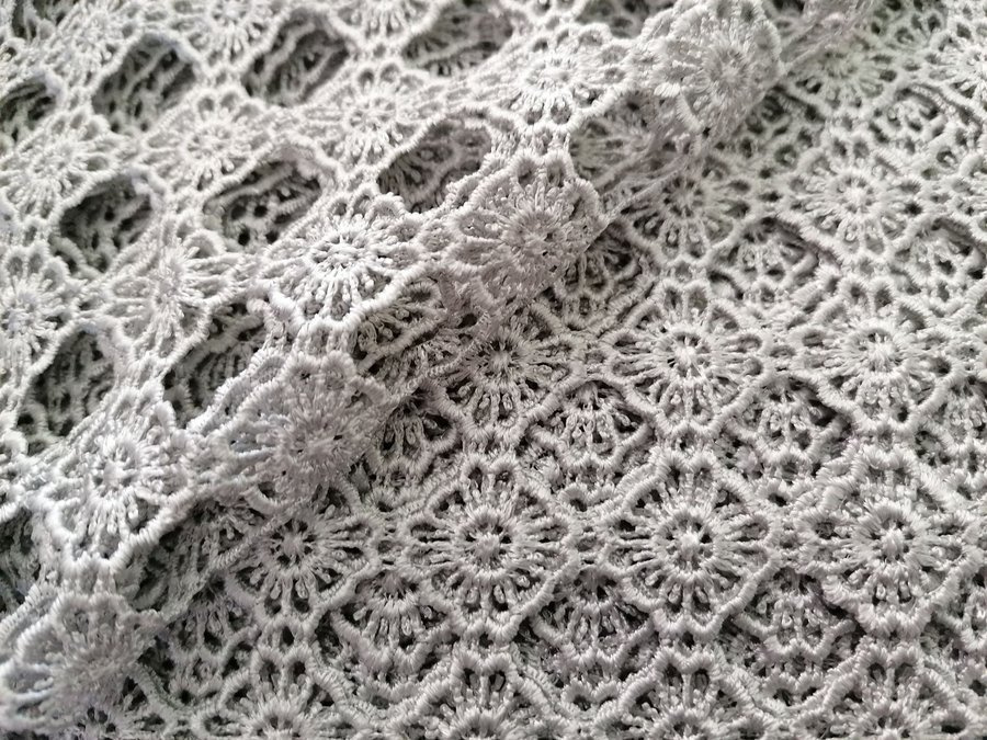 Koronka z eleganckim kwiatowym wzorem, stanowi doskonały element dekoracyjny firan, obrusów oraz serwet. Gipiura wykonana z najwyższej jakości przędzy poliestrowej.